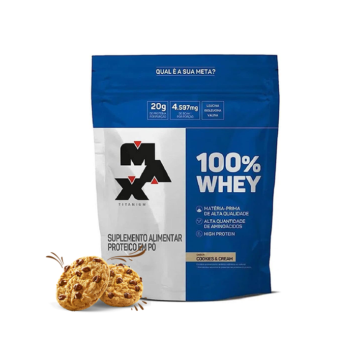 100% Whey Protein Max Titanium é um suplemento a base de proteína concentrada do soro do leite (Whey Protein Concentrate), matéria-prima elaborada com alta tecnologia, de elevado valor biológico, rápida digestibilidade e alta concentração de aminoácidos essenciais, que são fatores de relevância para auxiliar a síntese proteica muscular. O consumo de suplementos proteicos, associado à uma alimentação saudável e prática de atividade física auxilia na formação de músculos e ossos. Benefícios:> Alta quantidade de BCAA's;> Alto valor biológico;> Coadjuvante na formação de massa muscular;> Recuperação muscular pós-treino;